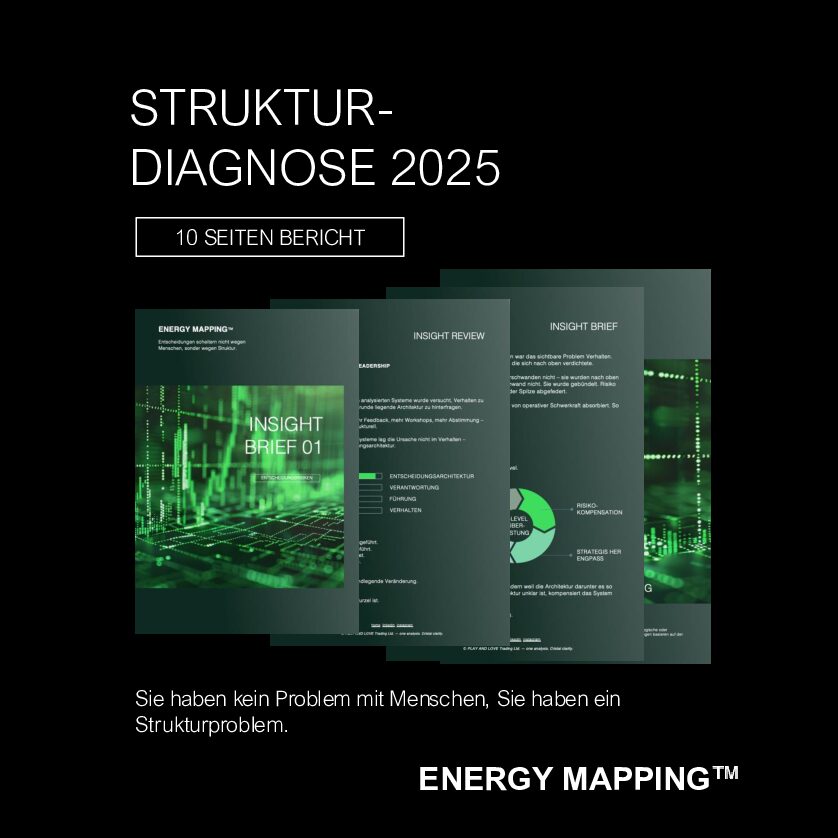 Weil Verhalten nie die Ursache war. Die Entscheidungsarchitektur war es. In den vergangenen Monaten habe ich wiederkehrende strukturelle Muster über Wachstumsphasen, Executive Teams und skalierende Organisationen hinweg analysiert und sichtbar gemacht.